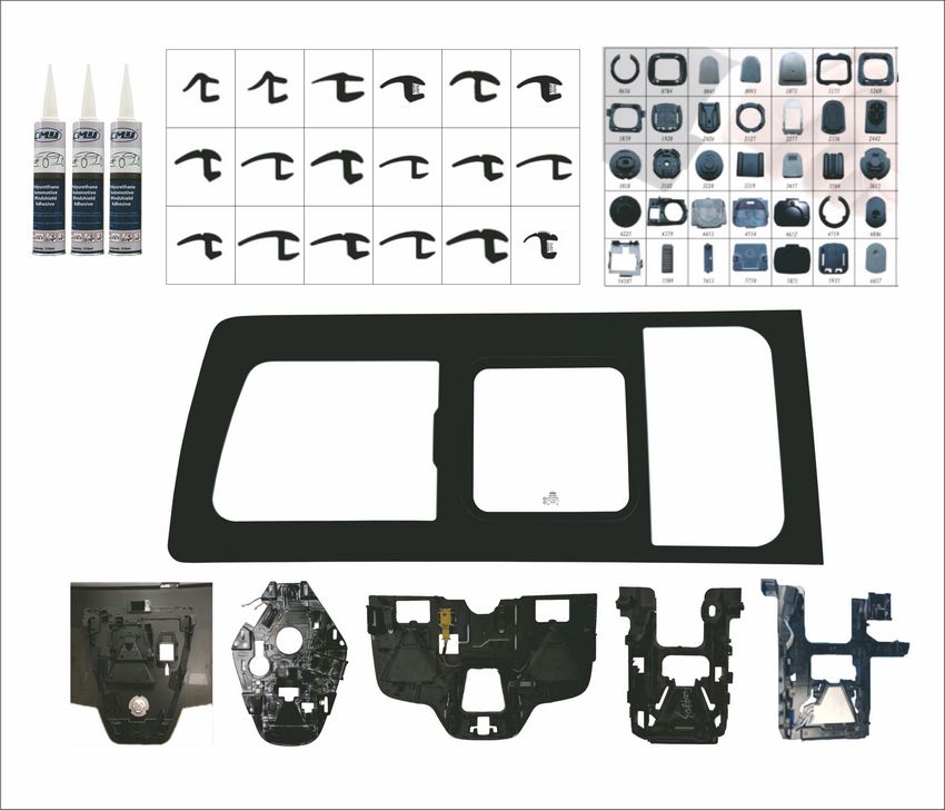 玻璃配套产品:含车框总成和其他汽车玻璃配套产品,如胶条,聚氨酯胶,镜座以及感应器等。